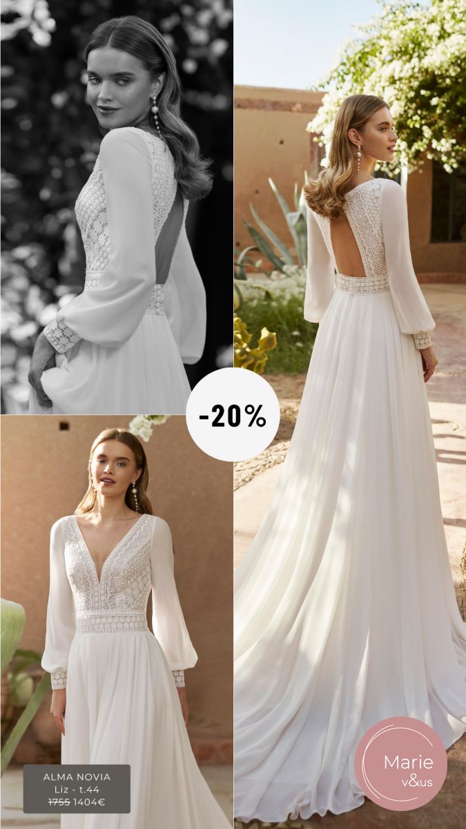 string(57) "Robe de mariée style Bohème boho dentelle fente manches"