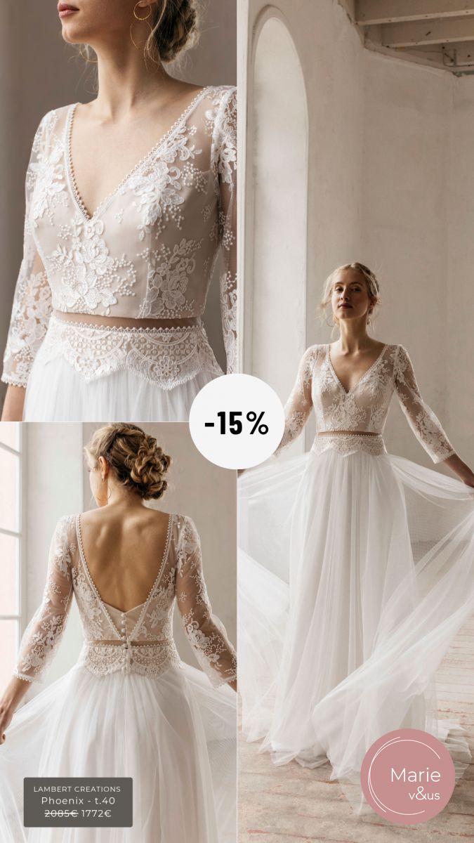 string(67) "Robe de mariée style Bohème deux 2 pièces top crop dentelle jupe"